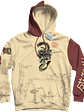 Hoodie con diseño en el frente y mangas estampados y color sublimación.