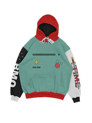 Hoodie con diseño en el frente y mangas estampados y color sublimación.